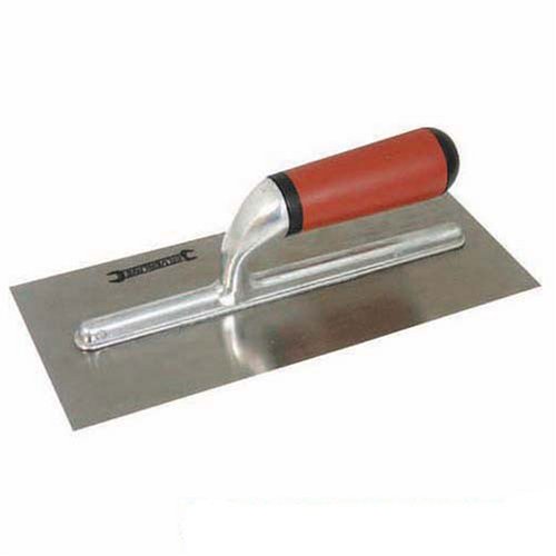 Platoir de plâtrier poignée caoutchoutée. Semelle en acier à ressort trempé et revenu. Fixation par 8-rivets. Poignée caoutchoutée. Longueur 28 cm